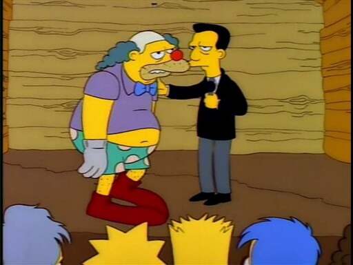 Now I must warn you that Krusty has laryngitis and a bad back, so he won’t be saying or doing anything.
