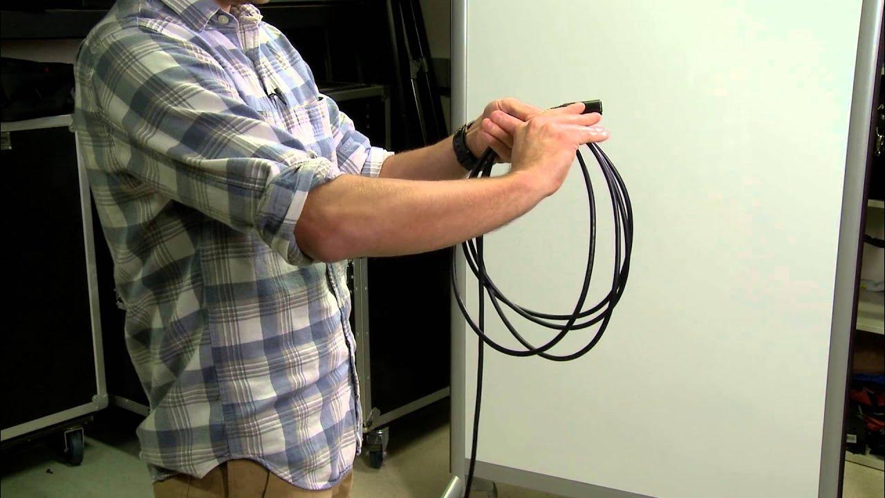 Go take one of your long extension cords and attach the other end somewhere off the ground and then uncoil it so that it’s suspended in the air and you’re holding the other end. You’ll feel how it wants to turn in your hand because there’s a twist in it. That’s what the method in the video is preventing from happening.