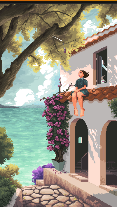 I like the animation very much, but I feel slight anxiety she’ll slide off those shingles any second… 😅