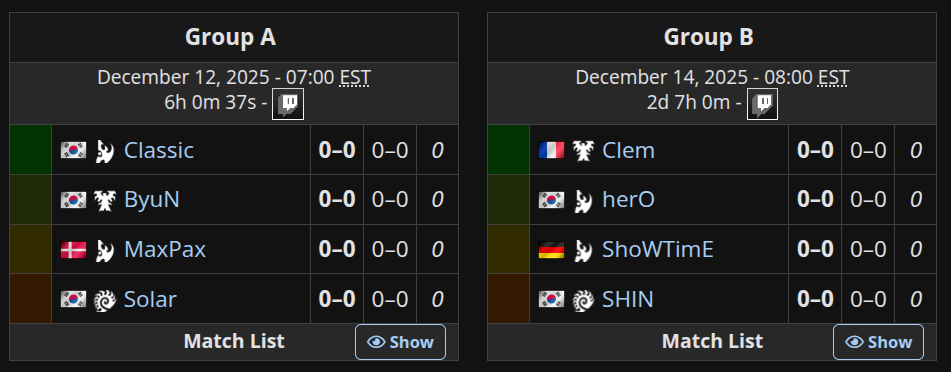 Die4EverOPMAtoStarCraft@lemmy.world•WardiTV 2025 Championship ($5000+, December 6 to 21)English